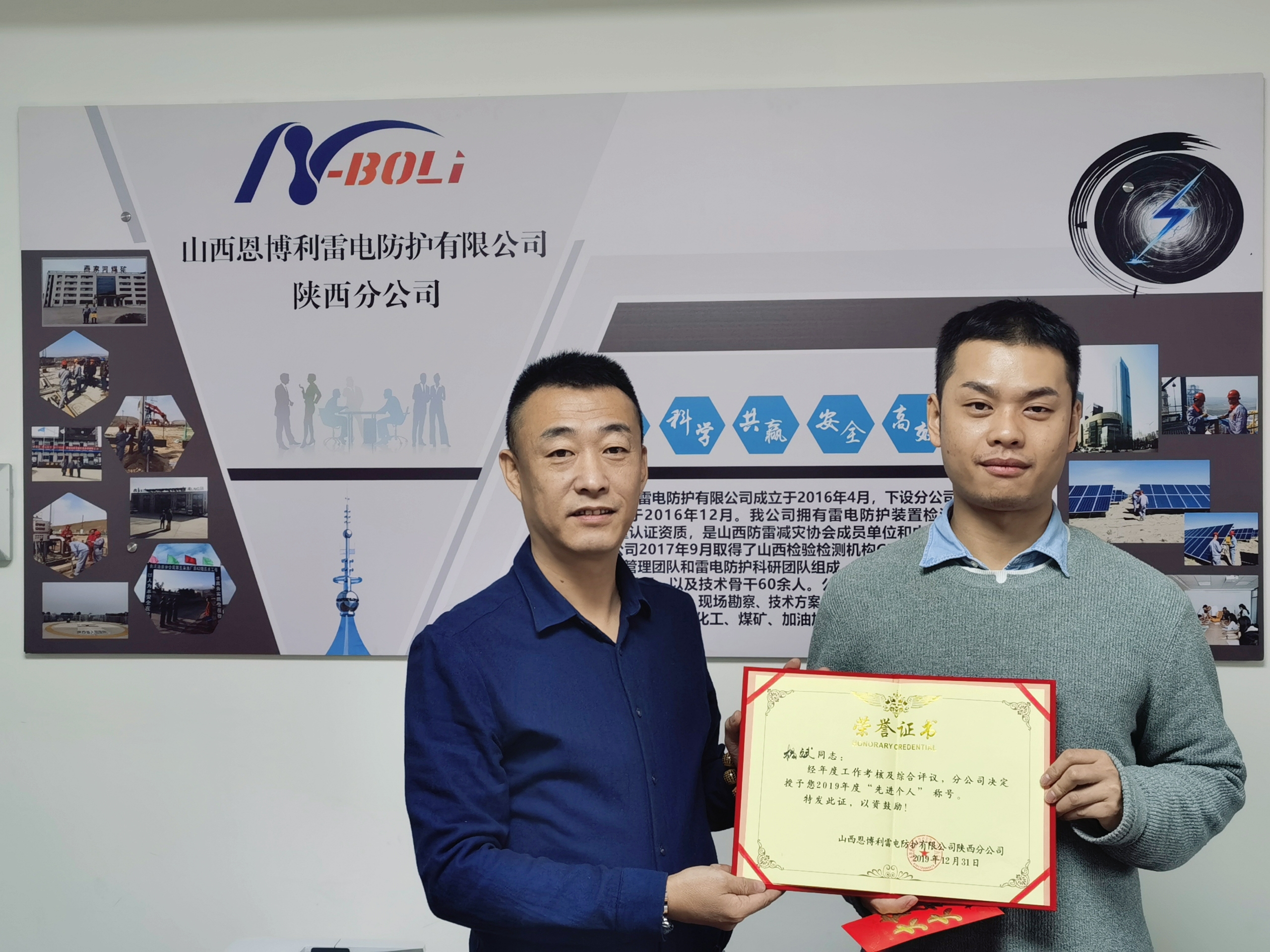 【概要描述】2020年1月14日山西恩博利雷電防護(hù)有限公司陜西分公司召開了2019年度工作總結(jié)會議。此次會議,既對2019年工作進(jìn)行了經(jīng)驗總結(jié),對優(yōu)秀員工進(jìn)行了表彰,同時也對2020工作進(jìn)行了安排部署。