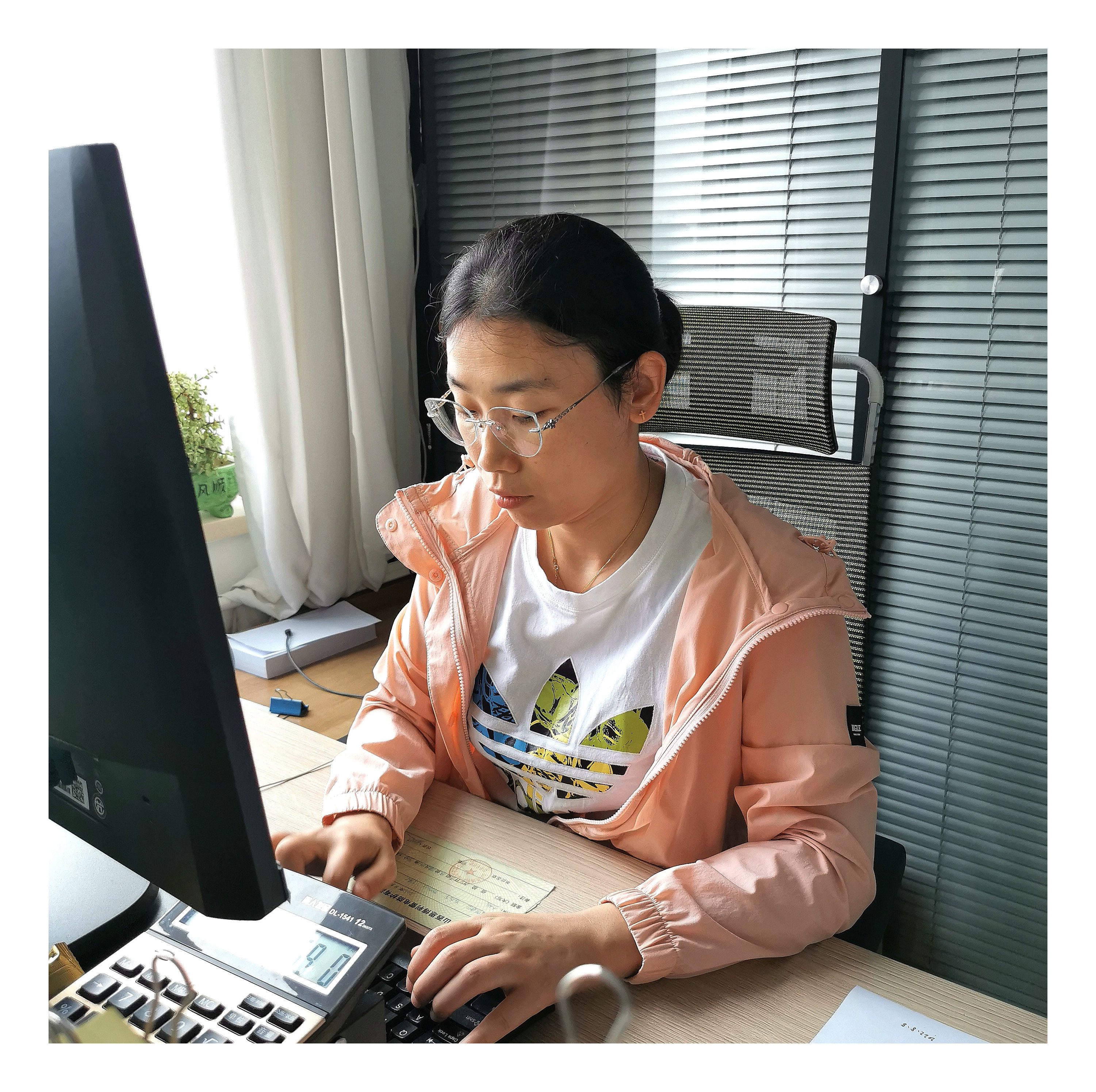 她是九歲孩子的媽媽。在跟隨公司的幾年中,會計崗位、出納崗位都做得細(xì)致而用心。與人合作時,融洽而謙和,獨當(dāng)一面時,果斷而利落,從體制內(nèi)到體制外,堅持原則的品質(zhì)不變。在無窮數(shù)字的演繹里,每一組無論大小都嚴(yán)格把關(guān),無論多少都做到無差錯、無失誤。專注中逐步向?qū)I(yè)化靠近!公司的所有人都是多面手,她也不例外。本職之外整理資料、檔案,做好后勤服務(wù)接待......娟秀工整的記錄里,足以見她的認(rèn)真與專心。